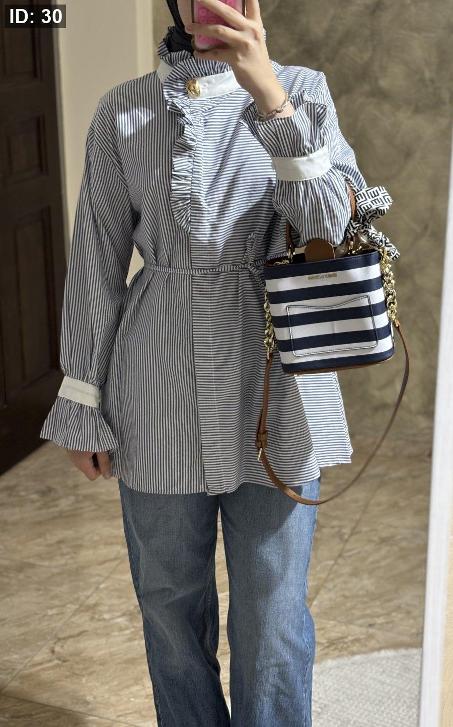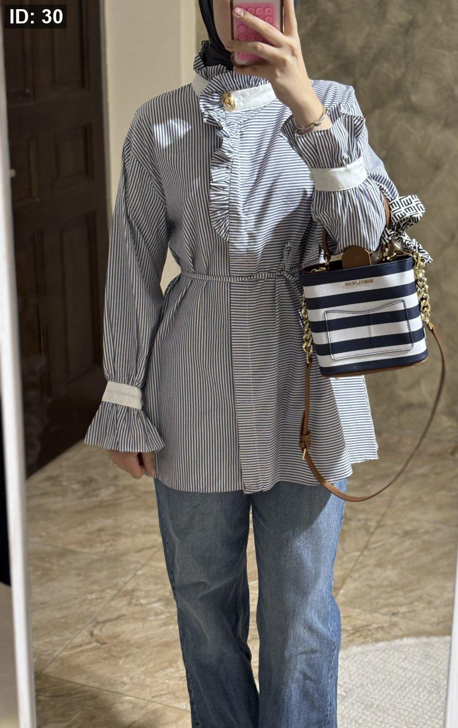 قميص بارد ومريح ومبطن باللون الابيض والبني