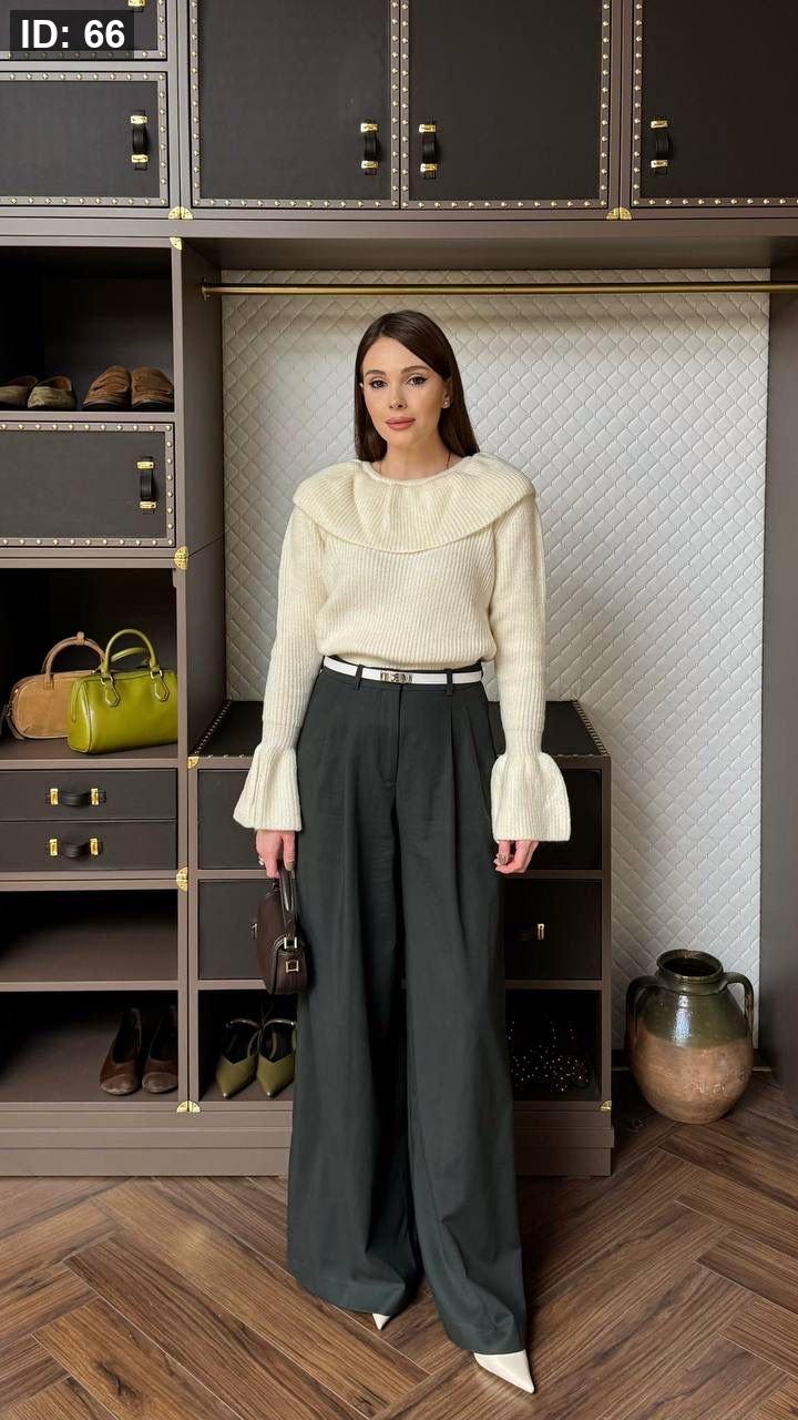 بلوزة صوف بقصة مميزة باللون الابيض