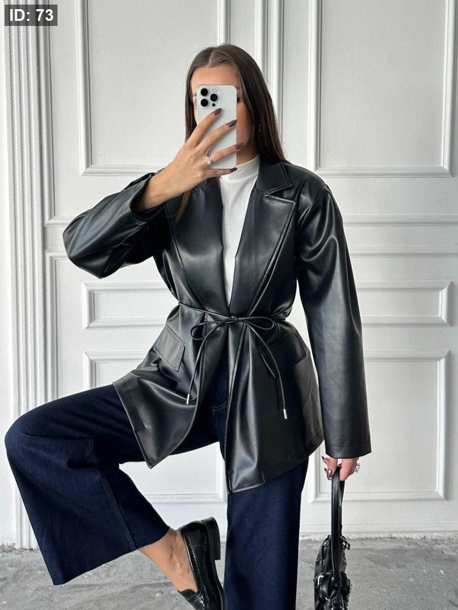 جاكيت جلد فخمة باللون الاسود