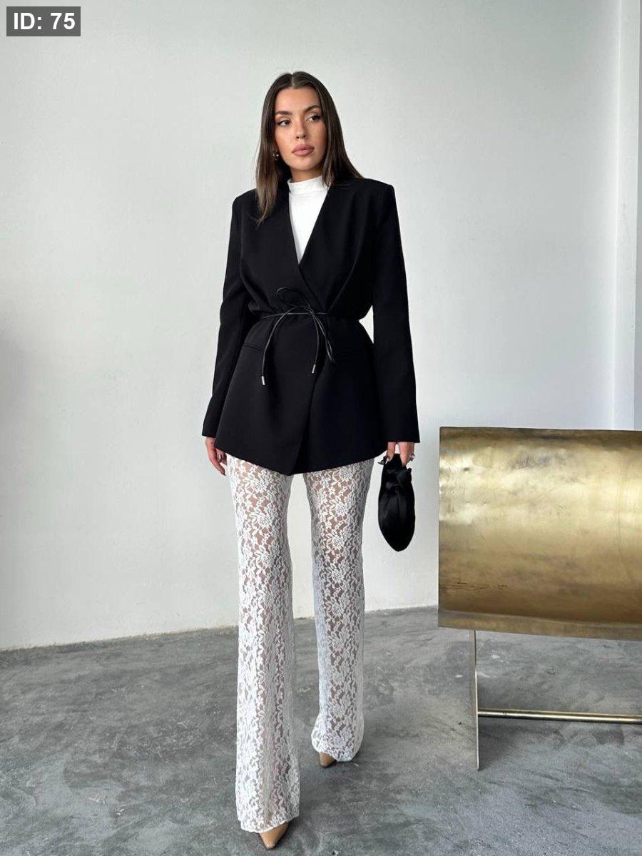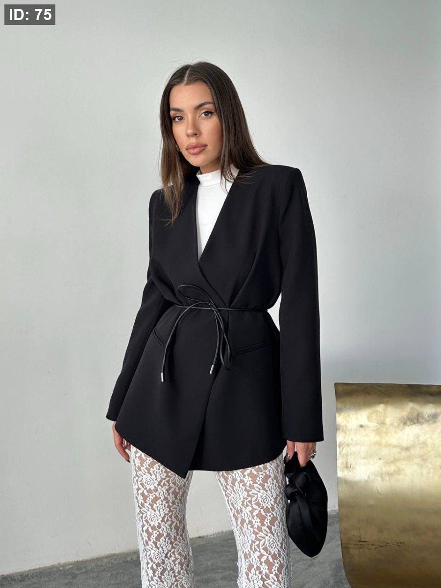 بليزر اسود مع قشاط جلد