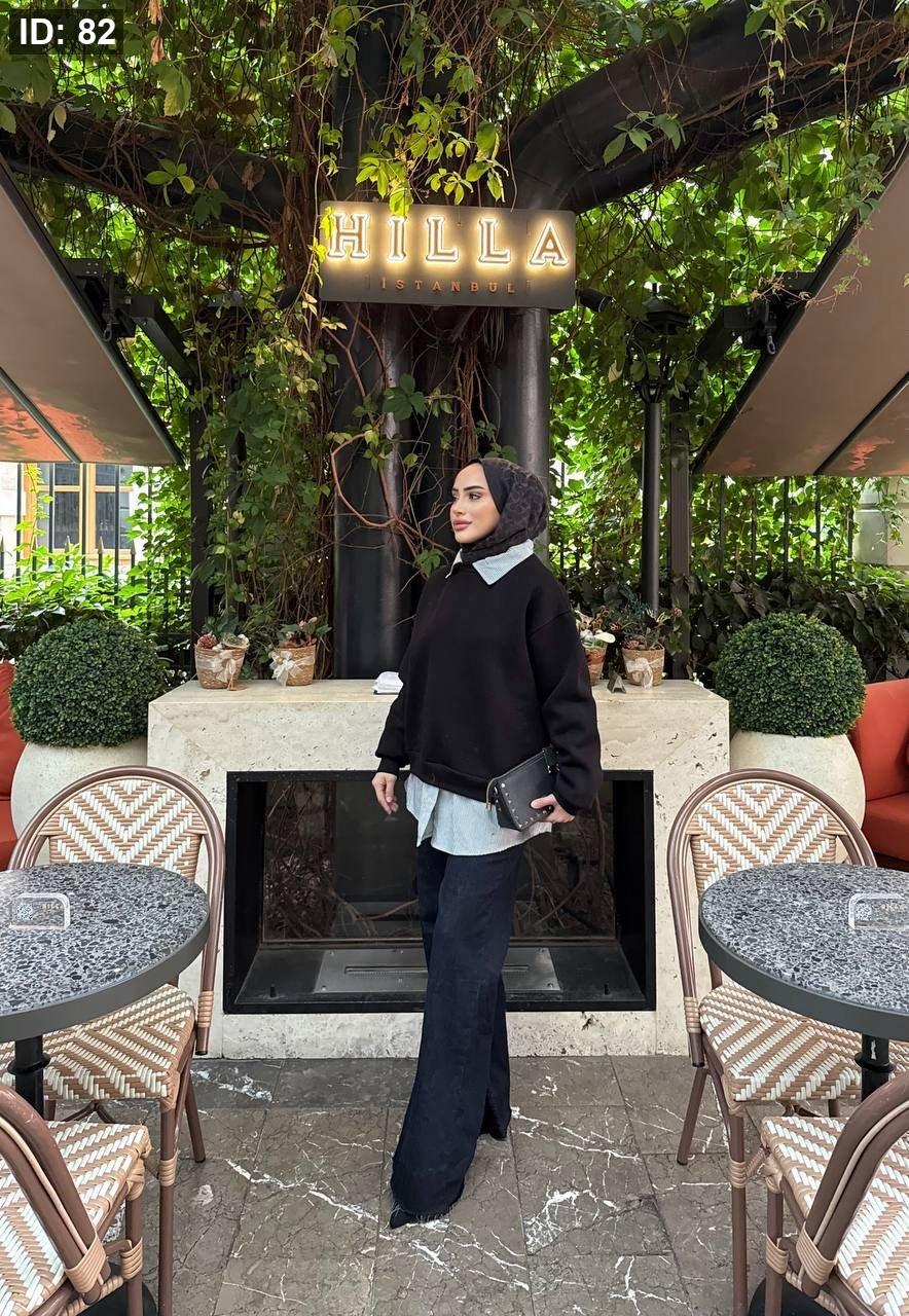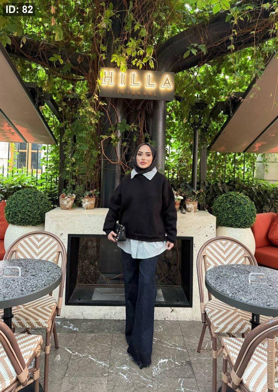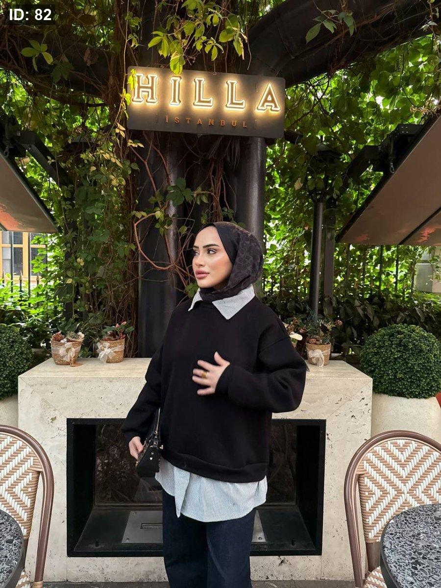 بلوزة بقصة قميص ثقيلة باللون الكحلي