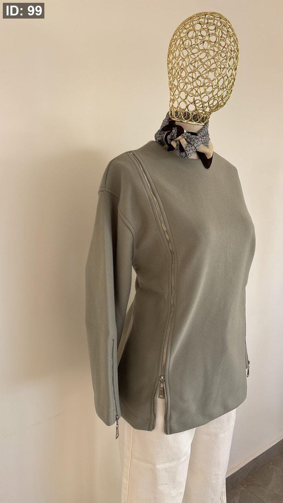 بلوزة بقصة قميص باللون الرمادي